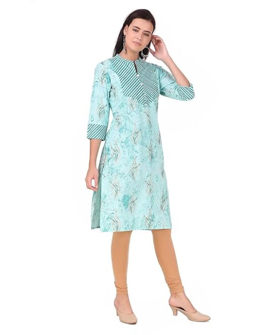 Soulful Threads Women Powder Blue Printed Cotton Kurti