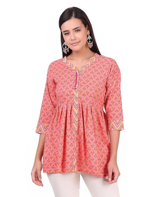 Soulful Threads Women Peach Floral Printed Cotton Kurti